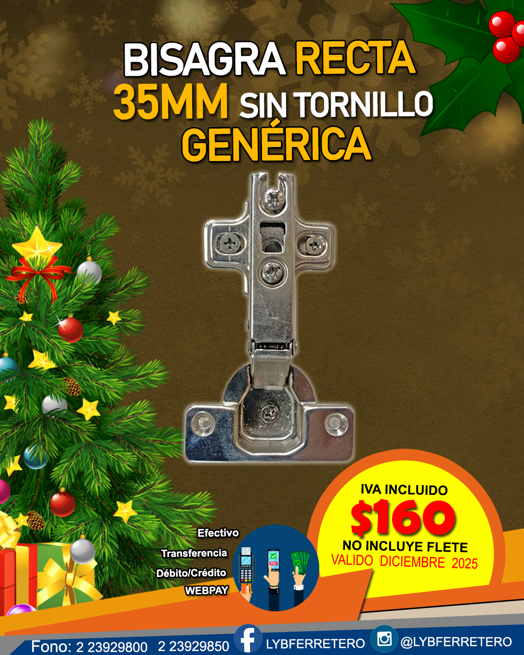 Bisagra 35MM RECTA Genérica (Sin Tornillos)